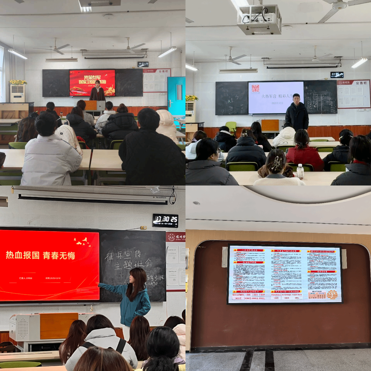 学院构建了立体化宣传网络。线下通过发放政策手册、电子屏滚动播放宣传政策;线上利用班级群等平台,推送征兵政策解读、报名指南等内容,让同学们随时随地了解征兵动态。同时,学院组织辅导员深入班级、宿舍,与学生面对面交流,针对不同年级、不同专业学生的特点,开展个性化宣传动员。在主题班会上,辅导员们结合征兵政策解读、军营生活纪实视频、退伍学长分享等丰富内容,向同学们全方位展现军营的独特魅力。重点强调了高校毕业生参军在升学、就业、经济补贴等方面的专项优惠,解答了同学们关于年龄限制、体检标准、专业适配等常见疑问。