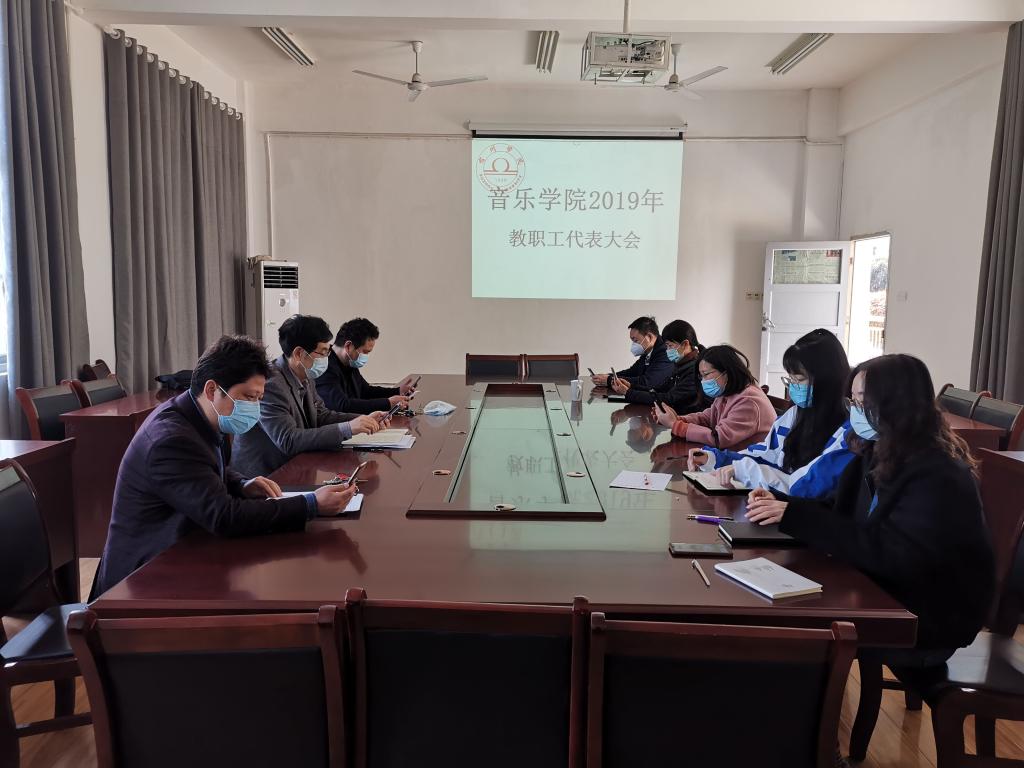 首先,会议在庄严的国歌中开幕。会上,顾大海院长对2019年学院工作进行报告,全面回顾总结了2019年的主要工作。分别从以下几个方面进行详实:一、教职工思想政治理论学习;二、常规教学和学生管理;三、实践教学工作、科研工作;四、教学改革;五、师资队伍建设;六、招生就业;七、经费支出情况和工会工作;八、校企合作等方面,同时又规划了2020年的工作安排,为推进宿州学院应用型高水平大学建设,推动音乐学院事业再上新台阶指明了方向。大会期间全体教职工们分别对学院工作报告、财务报告和提案说明进行讨论。教师们充分肯定了工作报告的内容,同时也提出了中肯的意见。
