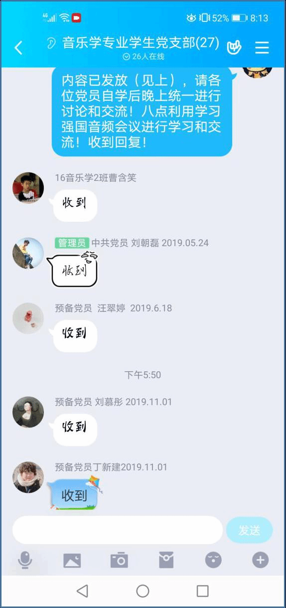为贯彻落实第三次党代会2020年年会暨四届四次“两代会”精神,4月21日晚,音乐学院音乐学专业学生党支部依托“学习强国”音频会议功能开展“线上”主题党日活动,支部书记冯姗姗主持活动,党支部全体党员参加活动。