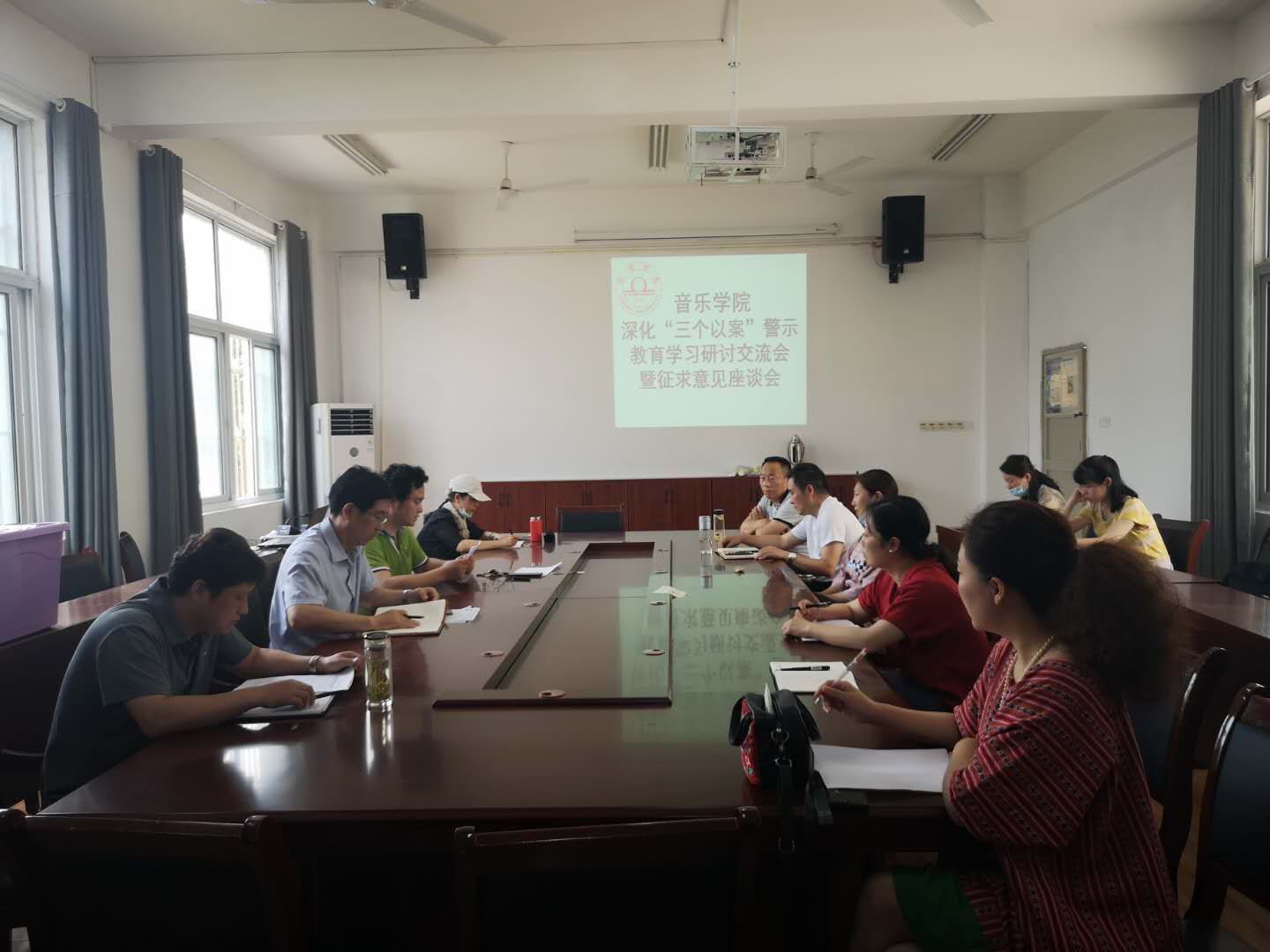 6月2日,音乐学院在一楼会议室召开深化“三个以案”警示教育学习研讨交流会暨征求意见座谈会。会议由党总支书记陈述立主持,领导班子成员、科级干部、各党支部书记等参加会议。