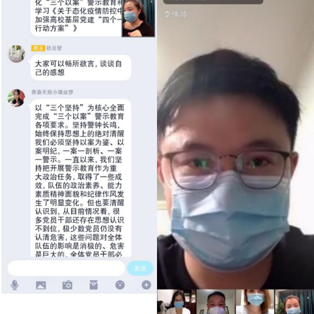 为贯彻落实学校《关于深化“三个以案”警示教育的工作安排》,音乐学院音乐学与表演专业教师党支部于6月17日开展以“四联四增”为主要内容的“以案示警、以案为戒、以案促改”“三个以案”警示教育以及学习《关于态化疫情防控中加强高校基层党建“四个一行动方案”》