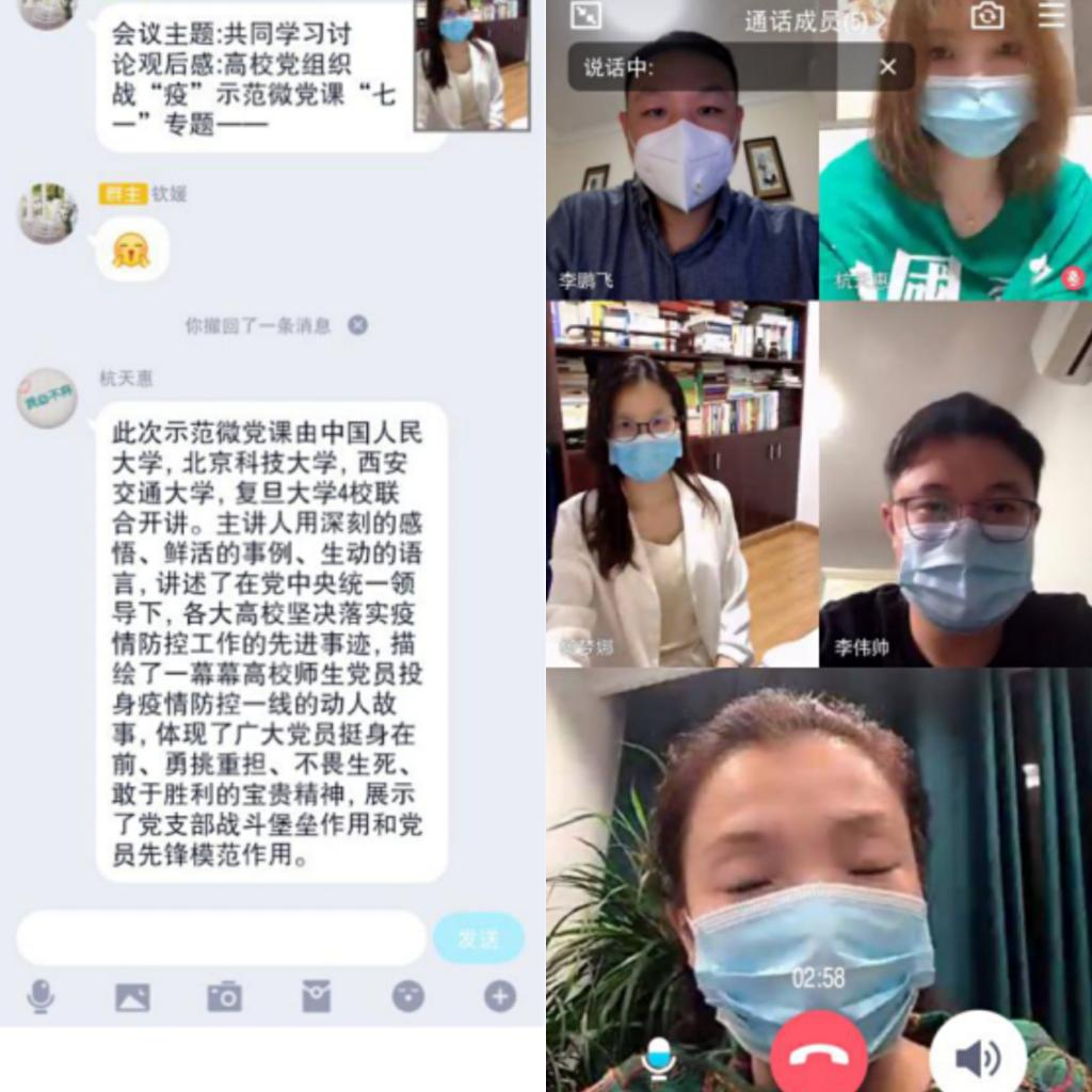 为庆祝中国共产党建党99周年,7月1日,由教育部思政司指导的高校党组织战“疫”示范微党课“七一”专题于线上开讲,音乐学院音乐学与表演专业教师党支部组织党员教师收看了此次党课直播。并通过QQ平台发表自己的观后感。