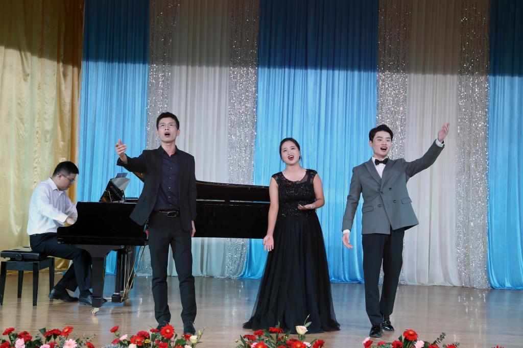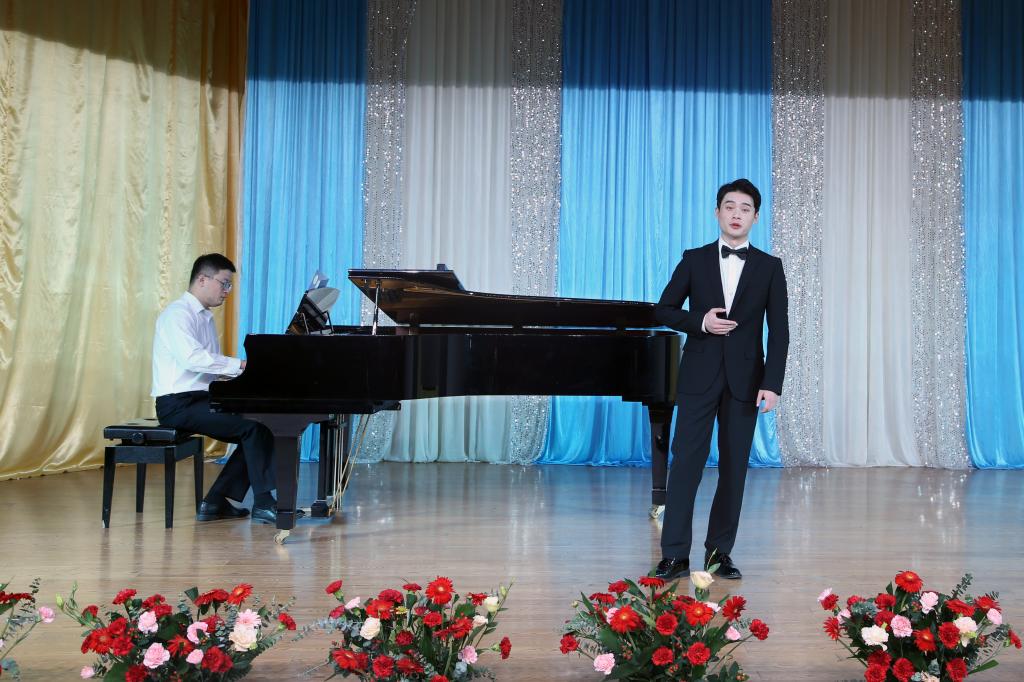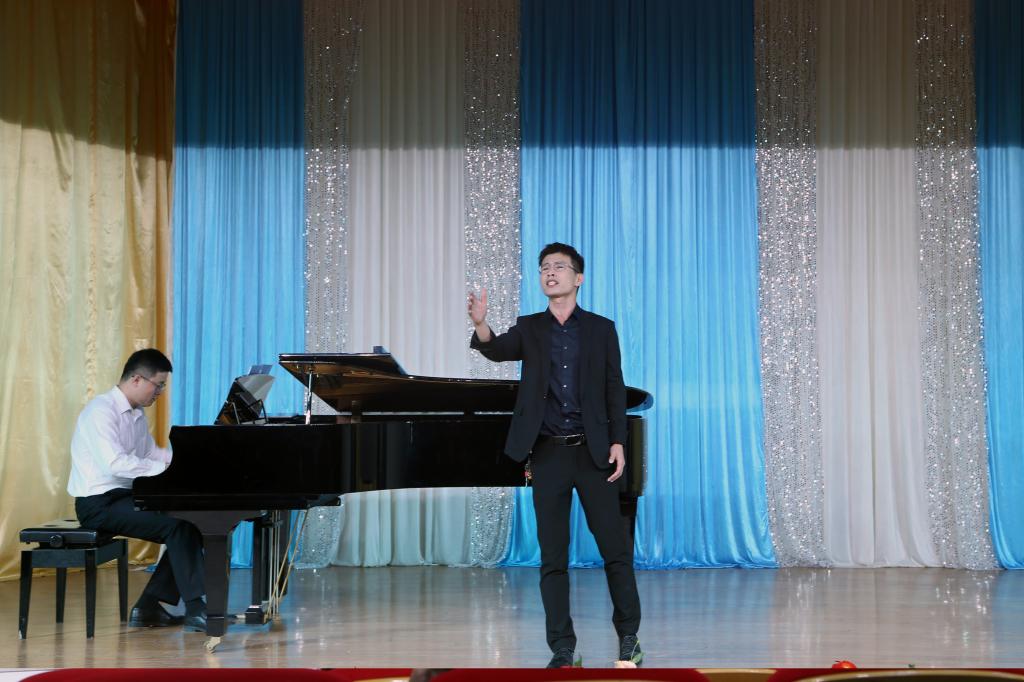 廖伟,音乐学院2012级毕业生,现任合肥伯乐音乐学校副校长。作为本场音乐会的助唱,用一首《再见了,大别山》,代表了对母校的怀念之情,和恩师的感谢之情。最后全体人员以一首《我和我的祖国》结束本场音乐会,整场音乐会徐翔为我们演唱了多首经典艺术歌曲,演出以精心编排的曲目、形式多样的表演给在场观众留下了深刻印象,赢得了他们热烈的掌声。