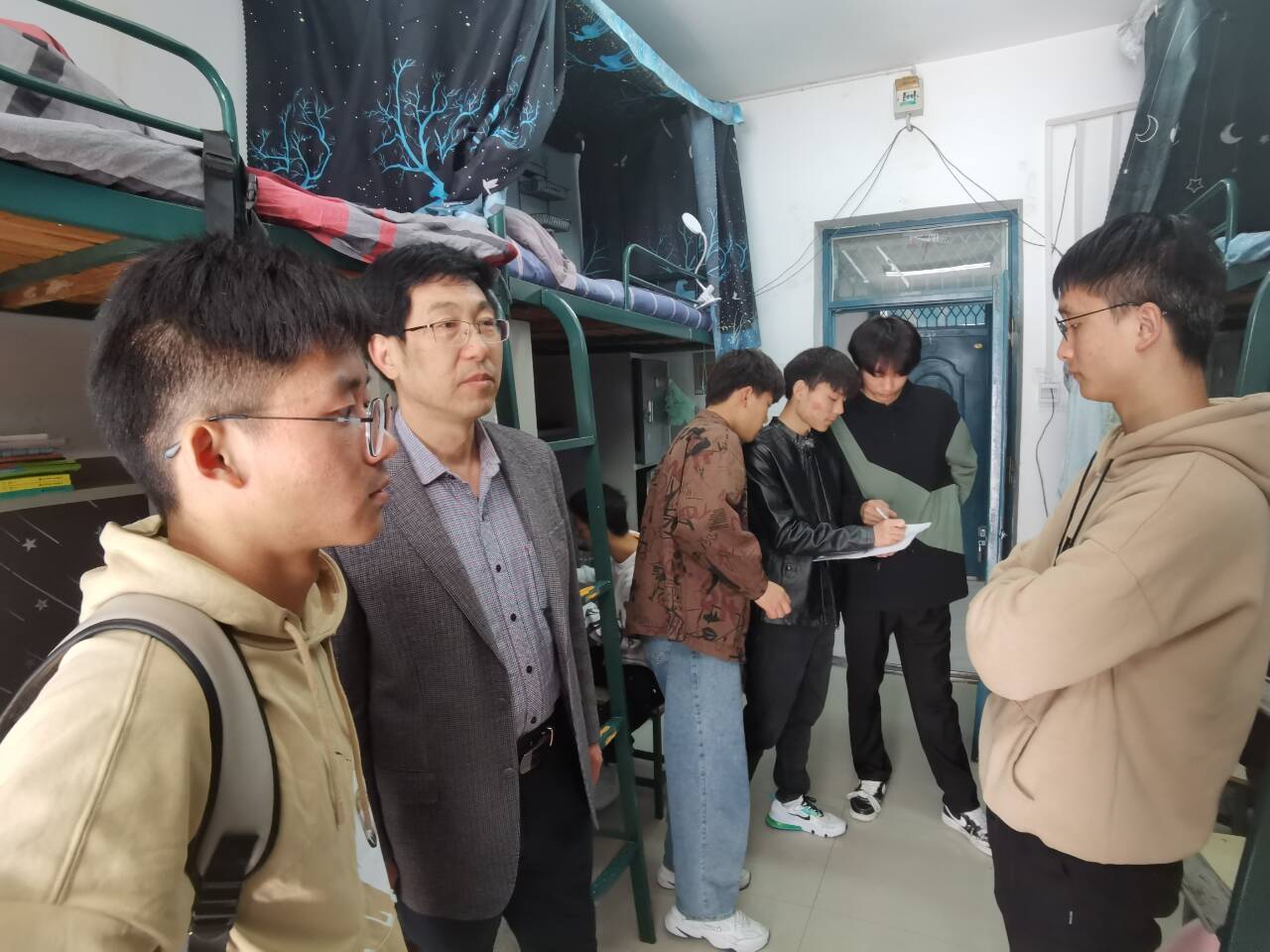 此次检查,根据学校禁止大功率电器使用的规定,对各个学生宿舍进行了安全排查,提醒同学们杜绝使用违规电器,确保用电安全。同时对寝室卫生、整洁程度进行强调。整个检查过程进行的十分顺利,各寝室的同学积极配合,寝室安全管理制度制定完善。陈述立书记强调,寝室是大学生的日常生活场所,一定要注意用电安全,提高自身的安全防范意识,注意防火防盗以及人身安全等问题。