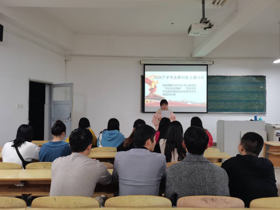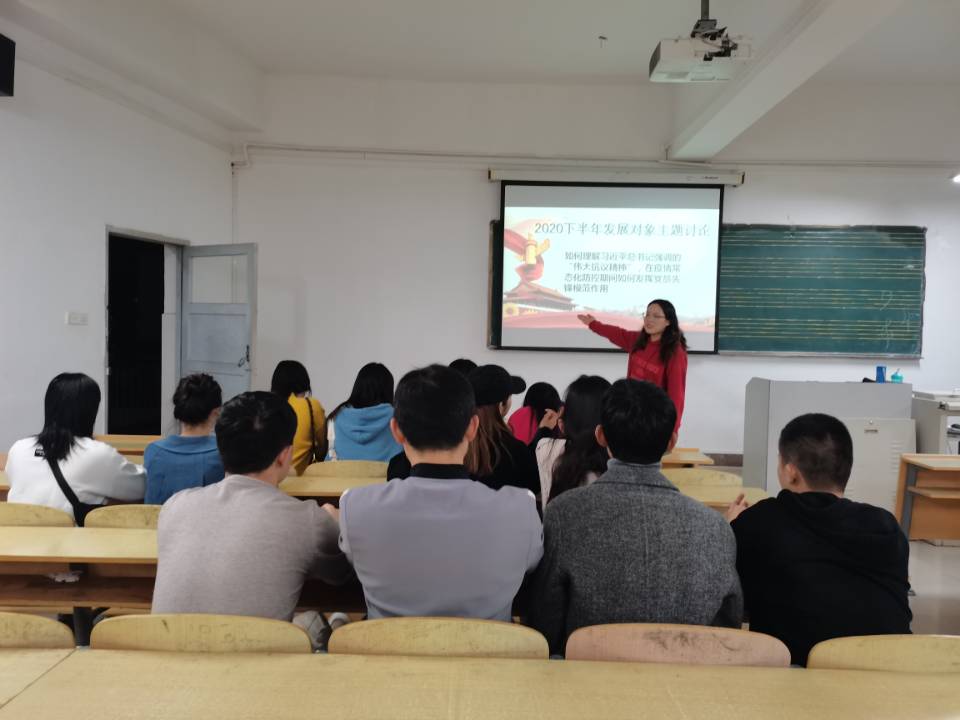 为加强学生党员发展对象的培养教育,帮助发展对象进一步明确入党动机,提高政治思想素质,11月16日,表演与学前教育专业学生党支部于D303举行2020下半年发展对象培训班主题讨论活动。