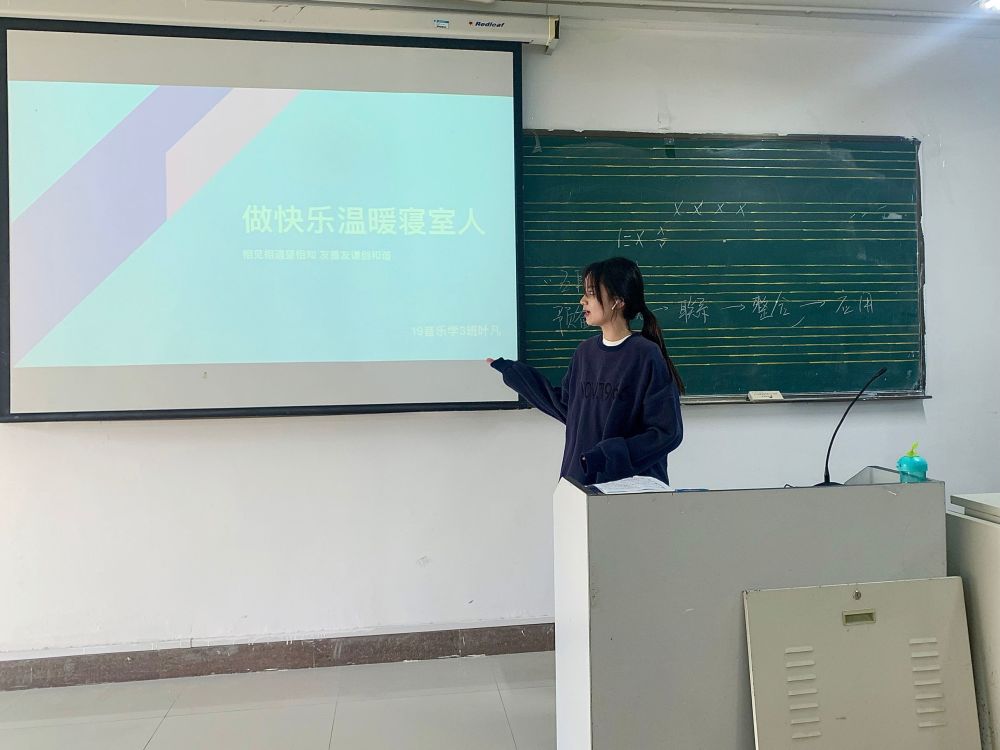 2020年10月19日音乐学院19级音乐学三个班分别在艺术楼A205、A206教室、D303教室开展了“做温暖快乐的寝室人”主题班会,19级音乐学专业全体成员参加活动。本次主题班会由各班宣传委员主持。