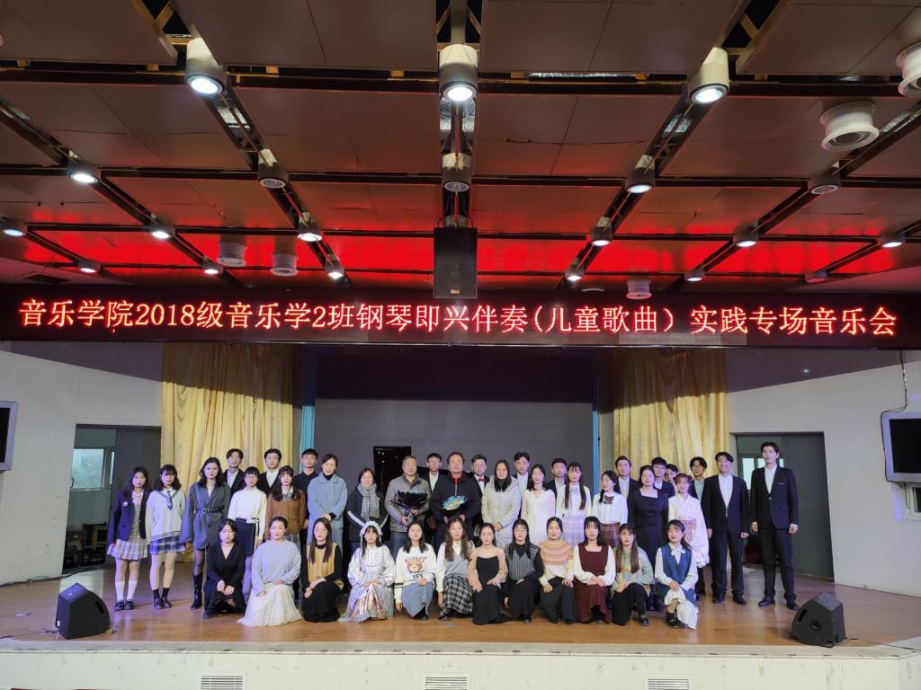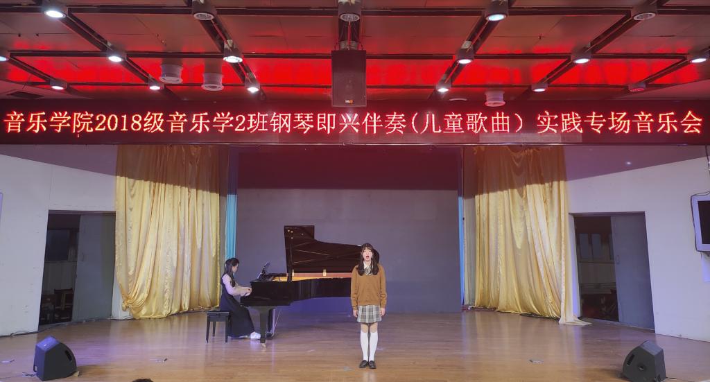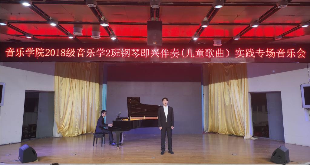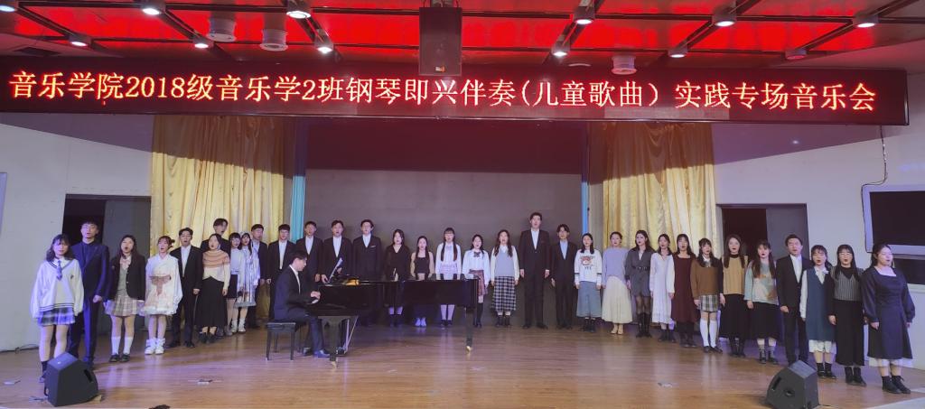 2020年12月24日下午四点半音乐学院在音乐厅二楼举行了钢琴即兴伴奏(儿童歌曲)实践专场音乐会。”本次音乐会由顾大海老师全程指导,音乐学院全体师生共同观看音乐会。