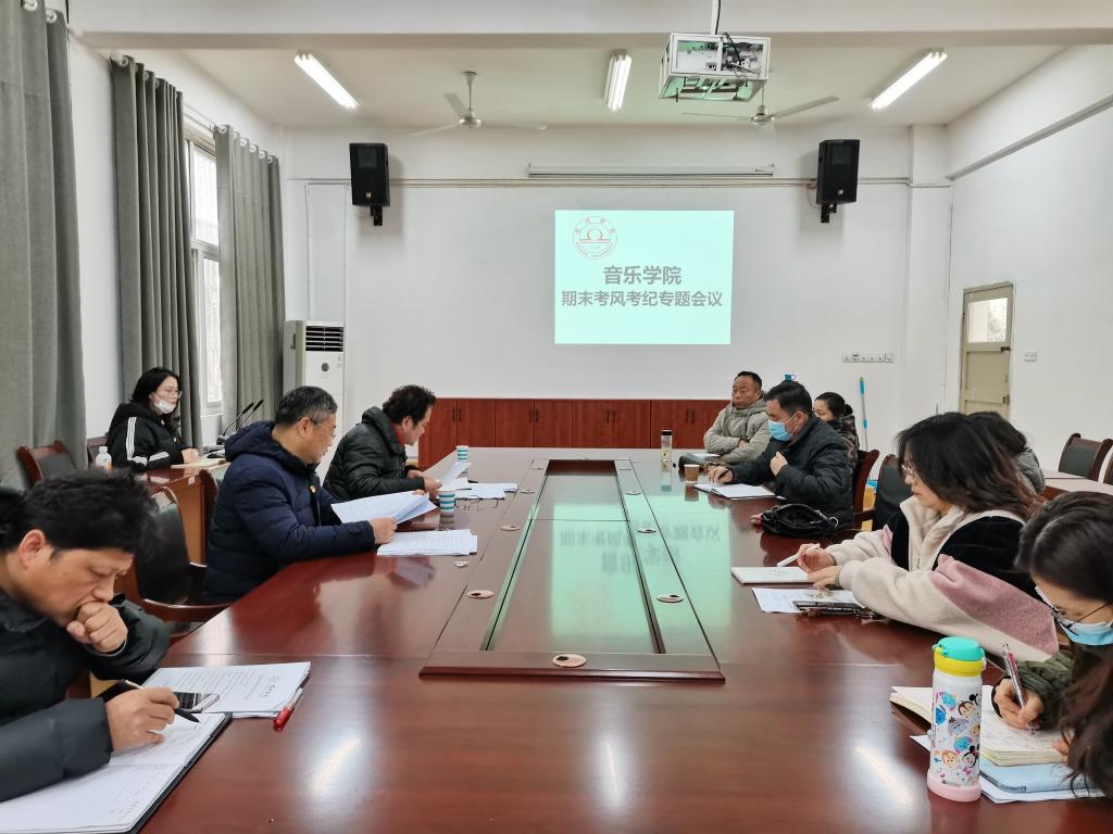 2021年1月6日,音乐学院在一楼会议室召开期末考风考纪专题会议,院长、党委副书记顾大海;党委副书记(临时负责)徐强;党委副书记、纪委书记王善虎以及全体教职工参加会议。本次会议由徐强书记主持。