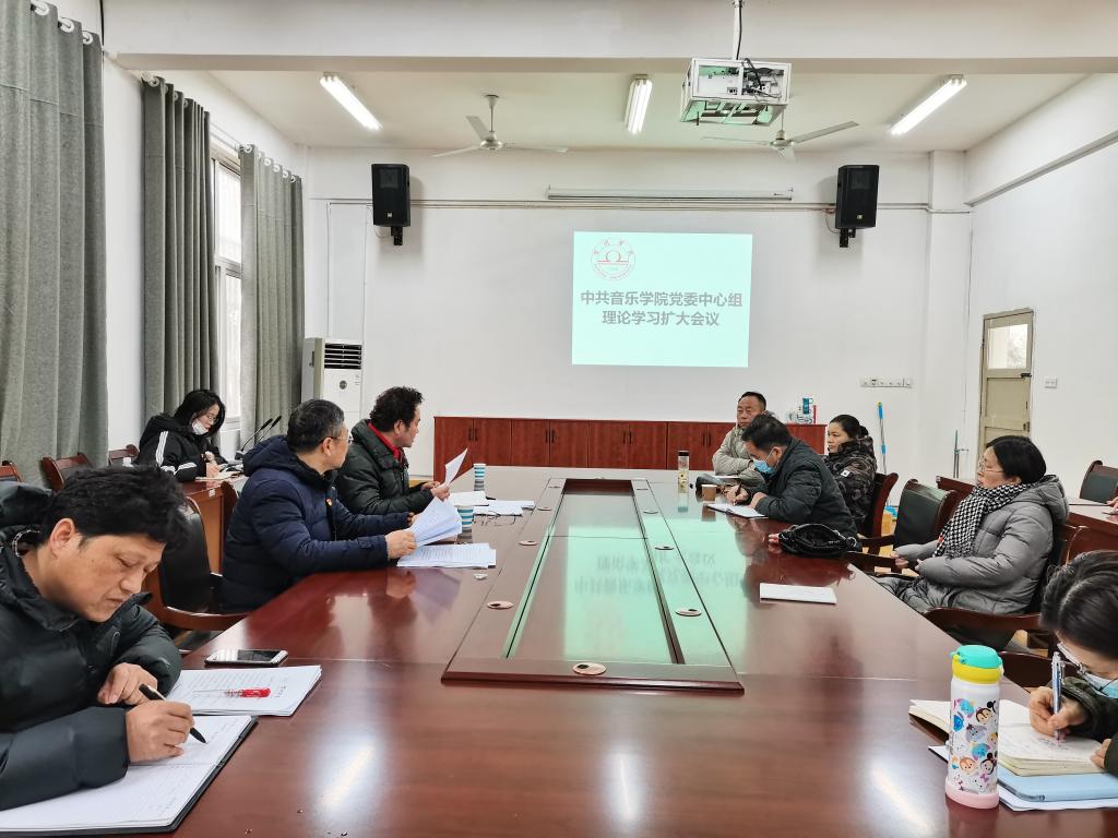 2021年1月6日,音乐学院在一楼会议室召开中共音乐学院党委中心组理论学习(扩大)会议。院长、党委副书记顾大海;党委副书记(临时负责)徐强;党委副书记、纪委书记王善虎以及全体党员参加了会议。本次会议由徐强书记主持。