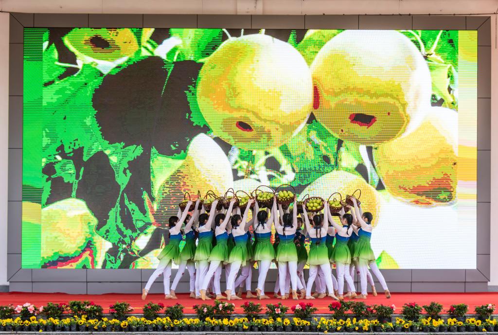 演出由开场舞《花鼓灯》拉开序幕,舞蹈《酥梨熟了》欢乐而热情洋溢的氛围迅速感染了在场的每位老百姓,赢得了热烈的掌声,学生们用轻巧多姿的舞蹈动作表达了对音乐的领悟,既有当地乡村特色,更有中华优秀传统文化贯穿始终。最后,演出在歌伴舞《幸福中国一起走》中圆满落幕。