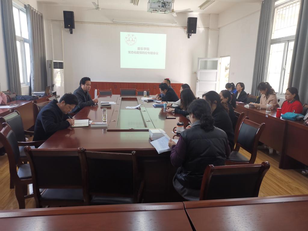 4月14日,音乐学院在艺术楼一楼会议室召开音乐学院常态化疫情防控专题会议,院长顾大海、党委副书记王善虎以及全体教职工参加此次会议。本次会议由王善虎副书记主持。
