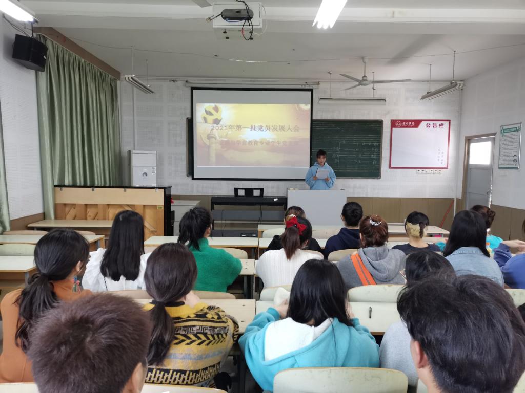 3月24日,表演与学前教育专业学生党支部在艺术楼A205召开2021年第一批党员发展大会。支部全体党员参加会议,会议由支部书记莫梦娴主持。