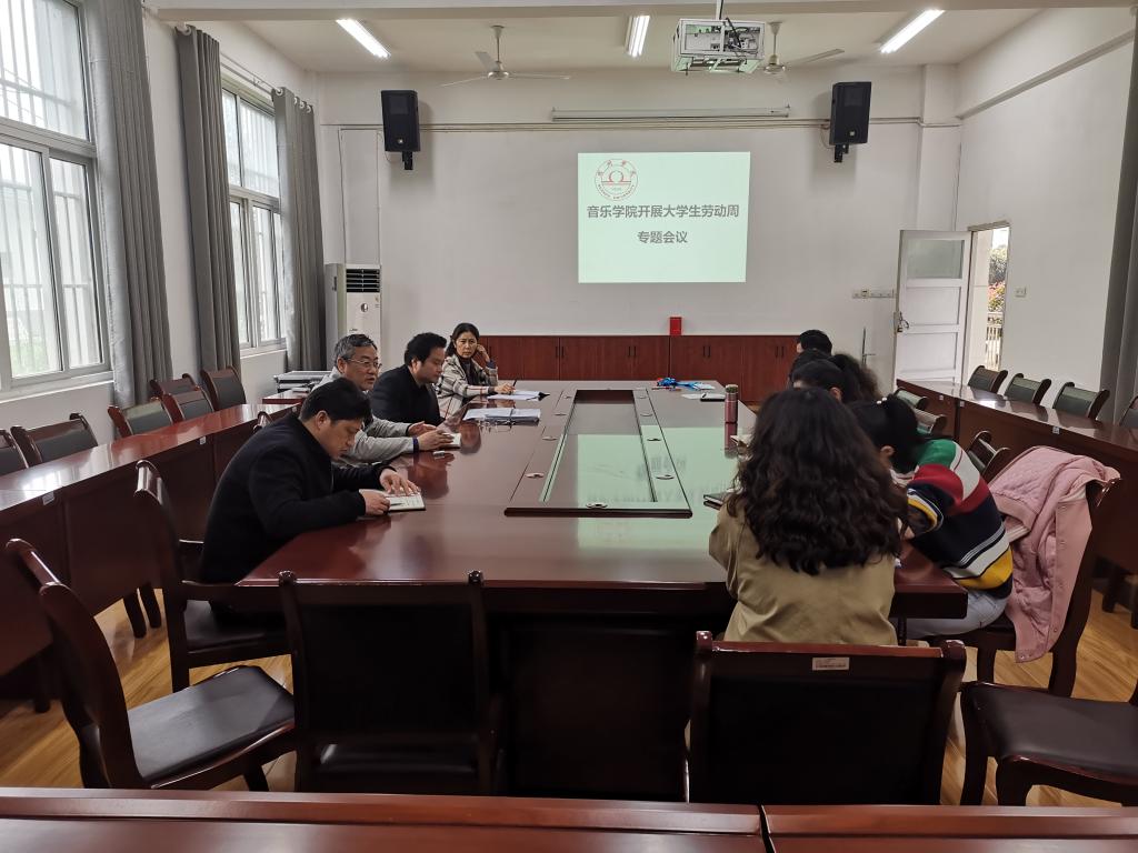 2021年4月27日,音乐学院在艺术楼一楼会议室开展大学生劳动周专题会议。音乐学院院长顾大海、党委副书记(临时负责)徐强、副院长陈燕秋、党委副书记王善虎以及全体辅导员参加会议。本次会议由顾大海院长主持。