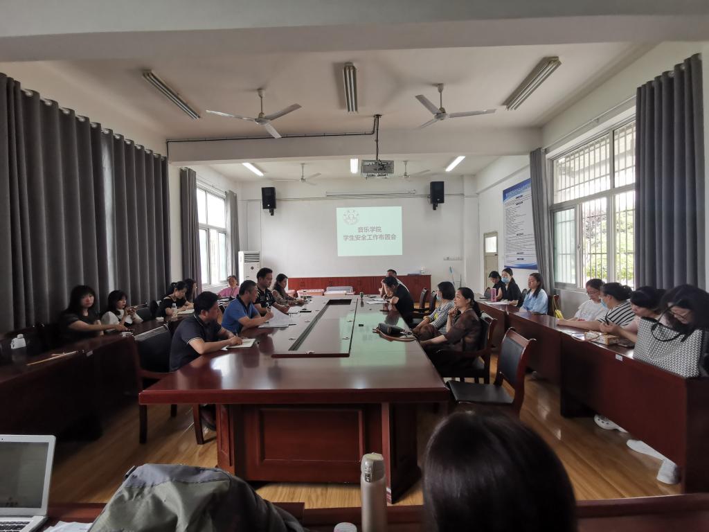 为进一步加强学生安全教育,让同学们更加了解安全方面的知识,增强同学们的安全意识,6月16日,音乐学院在一楼会议室召开了音乐学院学生安全工作布置会。院长、党委副书记顾大海、党委副书记(临时负责)徐强、副院长陈燕秋、党委副书记、纪委书记王善虎以及全体教职工参加了会议。本次会议由徐强书记主持。