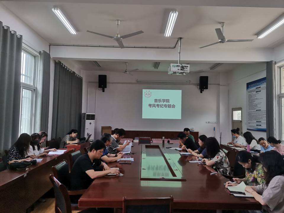 为了进一步加强同学们的考风考纪,构建诚信校园,保证期末考试的顺利进行,6月28日,音乐学院在一楼会议室召开期末考风考纪专题会议,院长、党委副书记顾大海;党委副书记(临时负责)徐强;副院长陈燕秋;党委副书记、纪委书记王善虎以及全体教职工参加会议。本次会议由徐强书记主持。