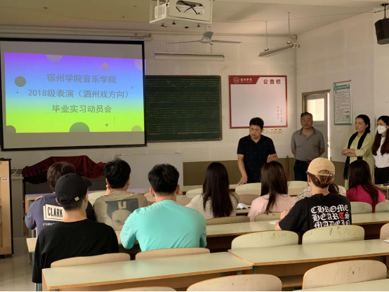 2021年9月9日上午10:00,音乐学院在艺术楼A205召开2018级表演(泗州戏方向)专业实习动员大会。党委副书记、院长王善虎,党委副书记(临时负责)徐强,表演教研室主任钦媛,指导教师杨梦娜,18级表演(泗州戏方向)全体同学参加会议。