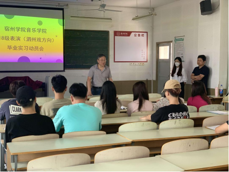 此次动员会上,王善虎首先做了动员讲话,强调了实习实践的重要性与实践性,希望同学们重视此次的实习,认真践行实习职责,以踏实的作风和虚心的态度向宿州市泗州戏剧团前辈学习,将自己的专业技能知识运用到实习工作中,掌握和提升自身的专业技能,深入到基层切身感受剧团生活与工作与具体事务中,结合自己的专业特色,主动面向行业一线、基层学习求教。钦媛根据实习目的和要求、内容安排、指导教师的责任与义务,做了详细的分配安排与讲解,并对同学们提出实习要求与期望。杨梦娜作为本届实习指导教师发言,强调同学们要认真完成毕业时期这个重要阶段,在工作与学习之间建设一个平稳和谐的过渡时期,为自己而成长与未来的职业发展提供坚实的基石,并对实习期所应该完成的内容与实习鉴定要求做出讲解。最后,徐强对本次会议进行总结。并强调实习期间的安全问题,希望同学们要牢固树立“安全第一”“严格防疫”等安全意识,切实提高安全防范观念。