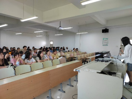 19级学前教育的刘淑敏同学为在座同学做了总结,分享了她记单词的方法,即利用碎片时间去记单词,并且告诉同学们考前不要紧张,适量做题,保持语感和手感。