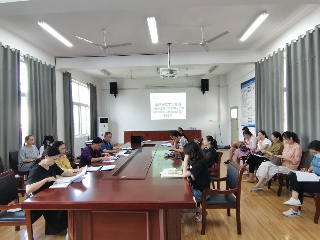 9月15日,音乐学院在一楼会议室召开学习贯彻《宿州学院“三全育人”综合改革试点工作实施方案》专题会议。党委副书记、院长王善虎,党委副书记(临时负责)徐强,党委副书记、纪委书记李小娜,副院长钦媛以及全体教职工参加了会议,会议由王善虎主持。