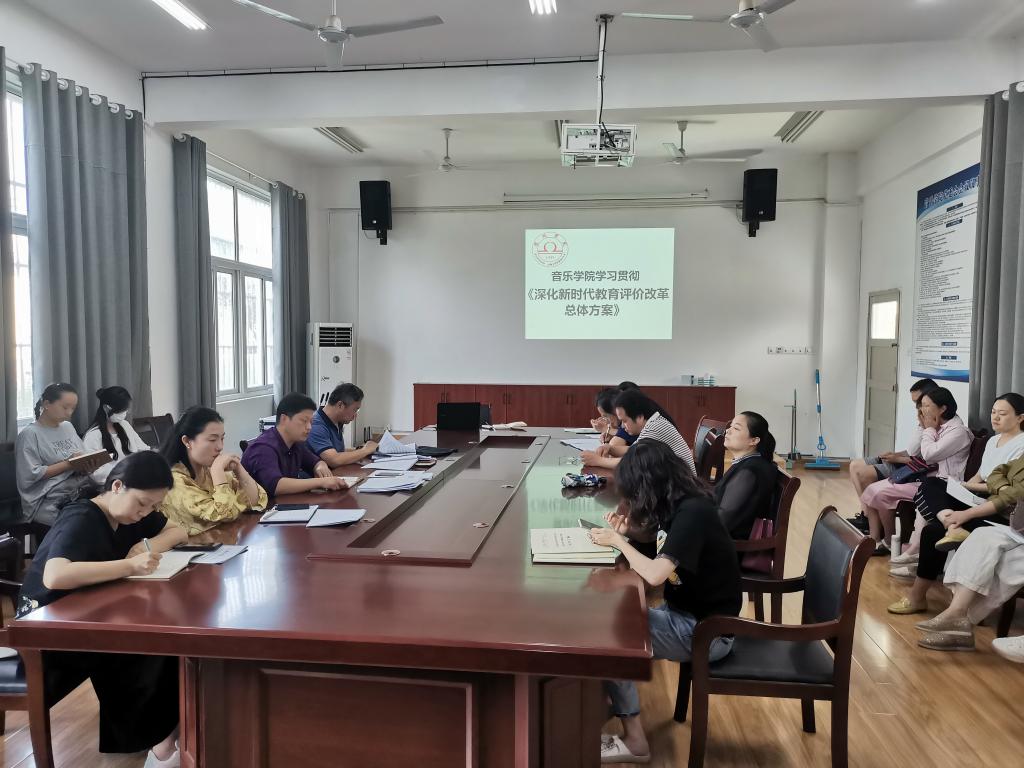 9月15日,音乐学院在一楼会议室召开《深化新时代教育评价改革总体方案》主题理论学习会。党委副书记、院长王善虎,党委副书记(临时负责)徐强,党委副书记、纪委书记李小娜,副院长钦媛以及全体教职工参加了会议,会议由王善虎主持。