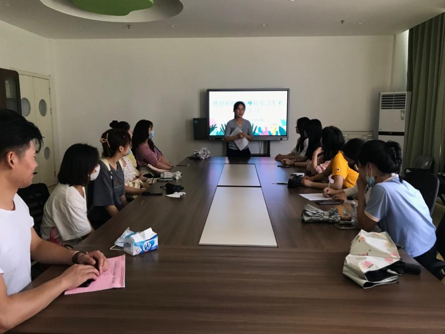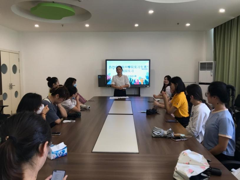 杜园长在介绍完园方基本情况后,对实习生也提出了期望。首先,身份的转变。从学生到实习教师,改变的不只是称呼,更多的是一份责任,实习生要以一名幼儿园教师的身份要求自己,注意言行举止,为幼儿树立良好的榜样。其次,实习工作的内容。包括协助班级老师做好管理工作、积极参与园方各项工作、遵守幼儿园的规章制度等。最后,餐饮的安排。园方为实习生准备工作餐的同时也希望大家做好垃圾分类,建设美丽和谐校园,共创文明校园、文明城市。