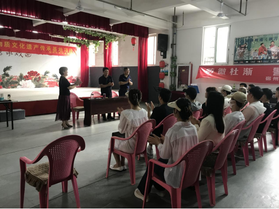 9月23日上午,音乐学院表演(泗州戏表方向)专业学生前往宿州市泗州戏剧团开展毕业实习工作,宿州市泗州戏剧团团长刘丽、音乐学院党委副书记(临时负责)徐强、委副书记、院长王善虎、办公室主任刘健、指导教师杨梦娜以及2018级表演(泗州戏方向)专业全体同学参加实习对接会。