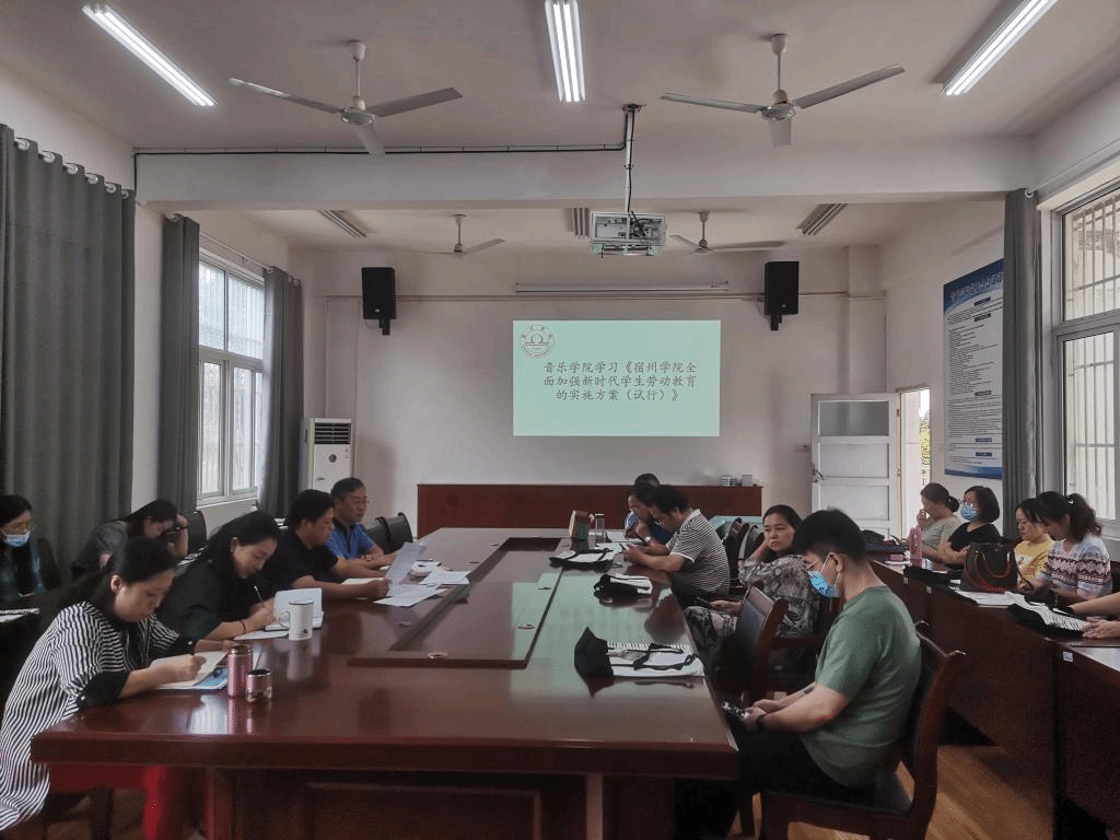 为进一步落实宿州学院全面实施劳动教育推进会会议精神,9月22日,音乐学院召开学习《宿州学院全面加强新时代学生劳动教育的实施方案(试行)》会议。音乐学院党委副书记、院长王善虎,党委副书记(临时负责)徐强,党委副书记、纪委书记李小娜,副院长钦媛以及全体教职工参加了会议,会议由王善虎主持。