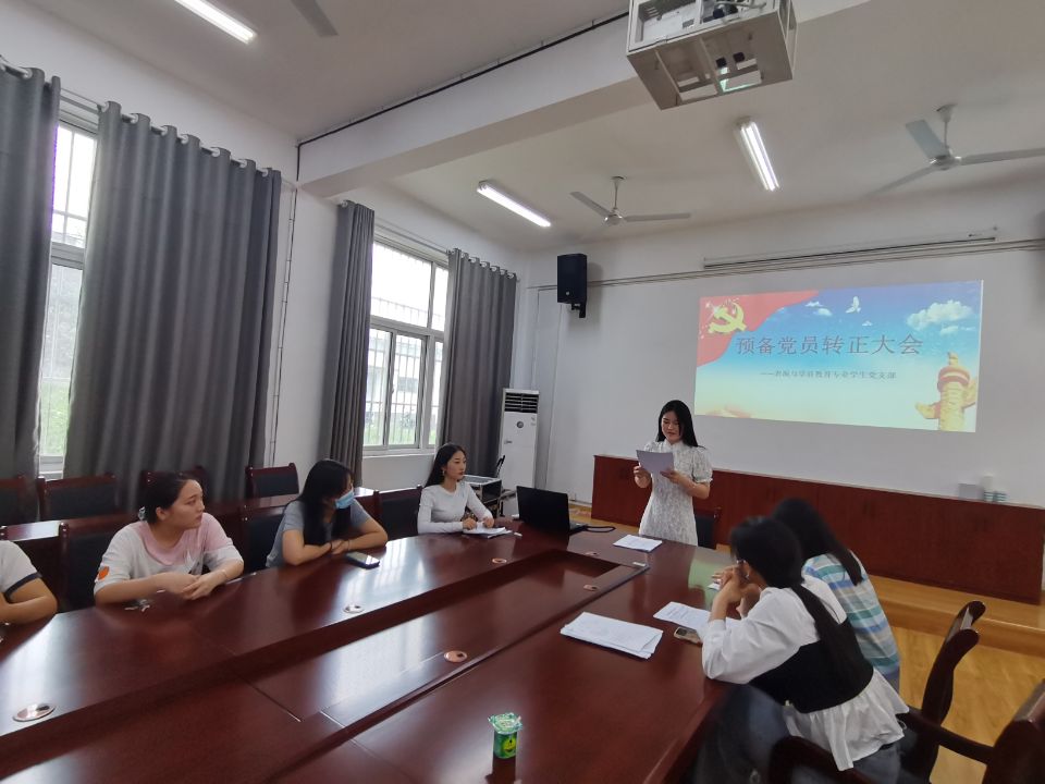 9月25日,表演与学前教育专业学生党支部在会议室召开预备党员转正大会,会议由支部书记莫梦娴主持,支部全体党员参加了大会。