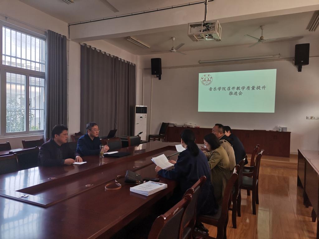 为进一步推荐宿州学院硕士点申报、一流学科专业与高水平大学建设工作,提升我校地方应用型高水平大学建设的整体水平和综合实力,提升音乐学院教学质量,10月26日,音乐学院召开音乐学院教学质量提升推进会。音乐学院党委副书记、院长王善虎,党委副书记(临时负责)徐强,教研室主任及科级干部参加了会议,会议由王善虎主持。