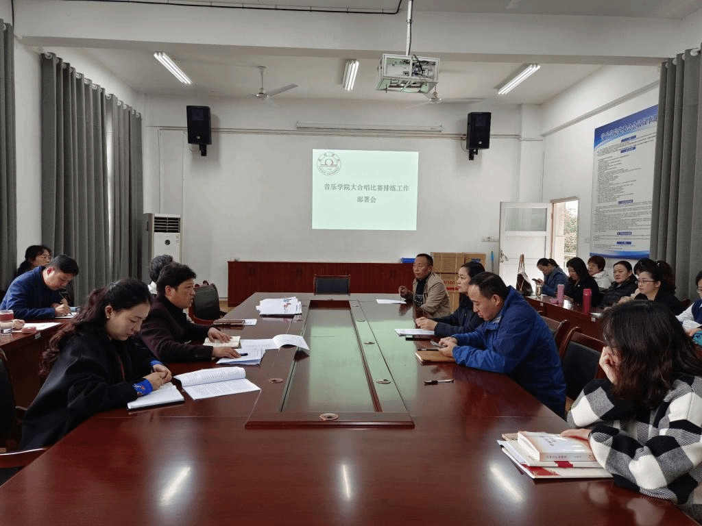 党委副书记、院长王善虎主持会议。会上拟定了《合唱比赛实施方案》,他强调:一是各教研室务必积极参加,认真做好组织排练工作,提振势气。二是音乐学院要提高站位,热情积极的去帮助其他兄弟学院做专业性的指导。三是务必将活动和疫情防控统筹考虑。