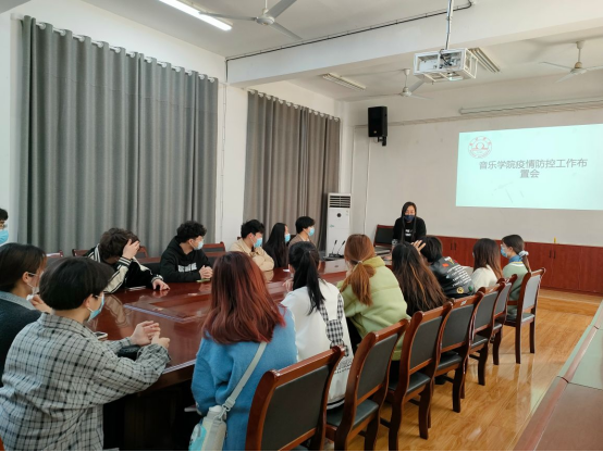 3月10日下午,音乐学院在一楼会议室召开疫情防控工作班级布置会,全体辅导员和主要班级负责人参加了会议。