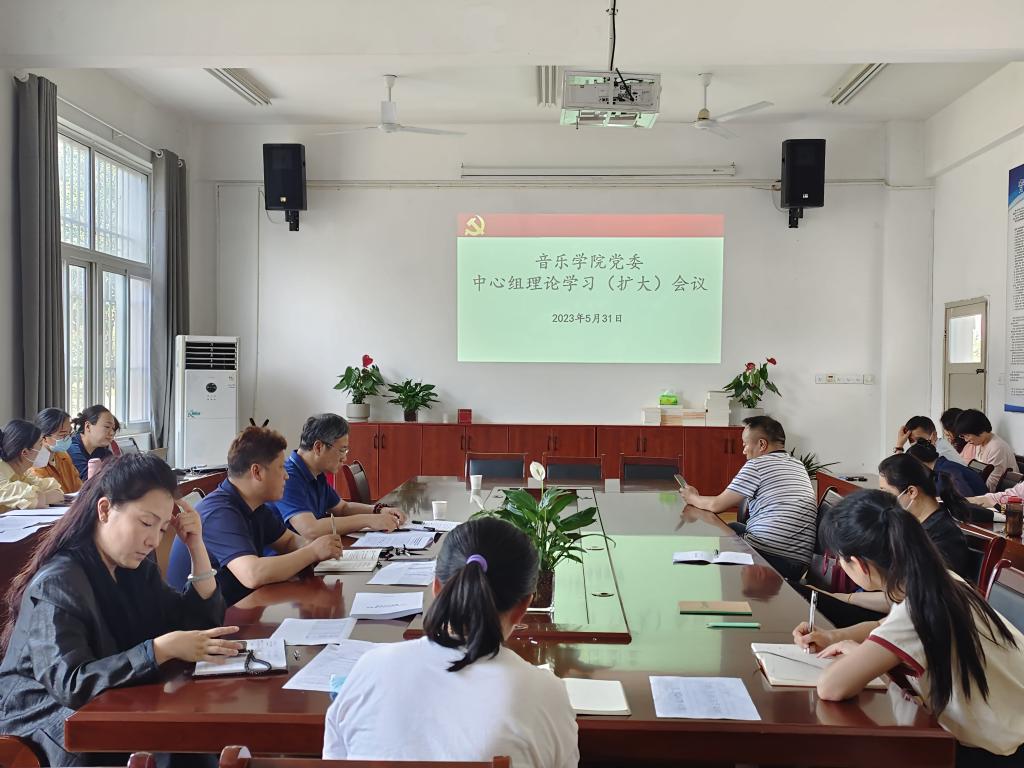 2023年5月31日,音乐学院党委在会议室召开中心组(扩大)理论学习会,党委书记徐强,音乐学院党委副书记、院长王善虎,党委副书记、纪委书记李小娜,副院长钦媛以及全体教职工参加了会议。本次会议由徐强主持。