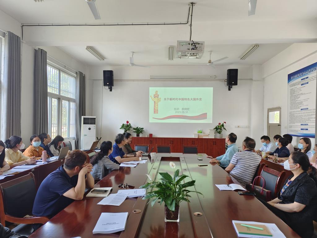 余晓宏分别从坚持习近平外交思想,坚持走和平发展道路,推动构建人类命运共同体三个方面深刻阐述了新时代中国特色大国外交。她强调,习近平外交思想是习近平新时代中国特色社会主义思想的重要组成部分,深化了对中国特色大国外交的规律性认识,为新时代中国外交知名了前进方向,提供了根本遵循。新征程上,外交战线将坚持以习近平新时代中国特色社会主义思想特别是习近平外交思想为指引,自信自强、守正创新,胸怀天下、蹚厉奋发,不断开创中国特色大国外交新局面,为全面建设社会主义现代化国家、全面推进中华民族伟大复兴营造更加主动有利的外部环境!