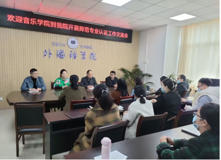 11月22日下午音乐学院副院长钦媛带领科级干部、学前教研室全体教师赴外国语学院开展师范认证学习调研活动。