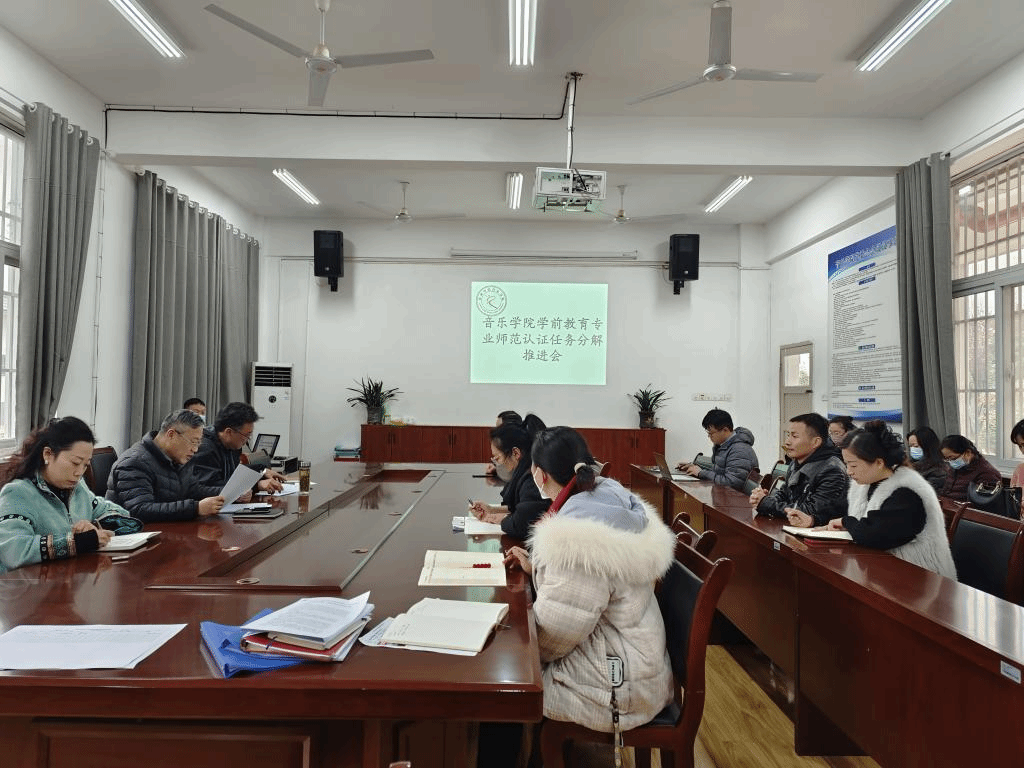 11月22日下午音乐学院在一楼会议室召开音乐学院学前教育专业师范认证任务分解推进会,音乐学院党委书记徐强,院长刘文波,党委副书记、纪委书记李小娜,副院长钦媛及全体教师参加了会议,会议由钦媛副院长主持。