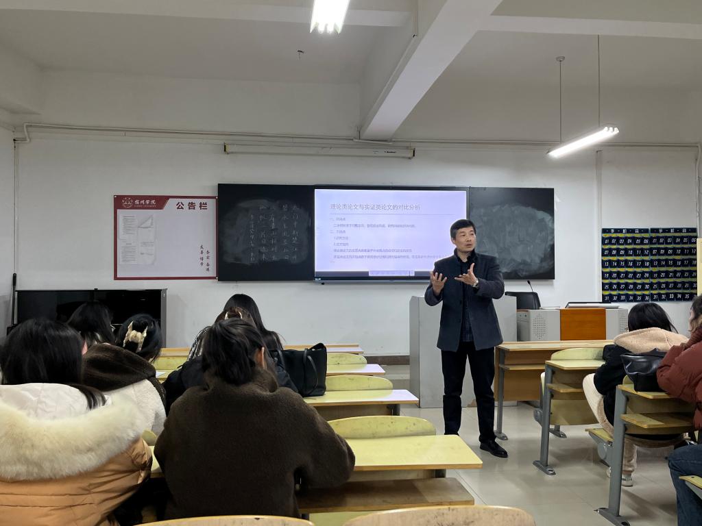 为引导学生更好的把握毕业论文写作方法和要点,提高毕业论文质量,2023年11月28日,音乐学院在艺术楼D301举办社科类本科毕业论文写作规范讲座。本次讲座由朱韩兵副教授主讲,音乐学院2024届全体毕业班学生参加。