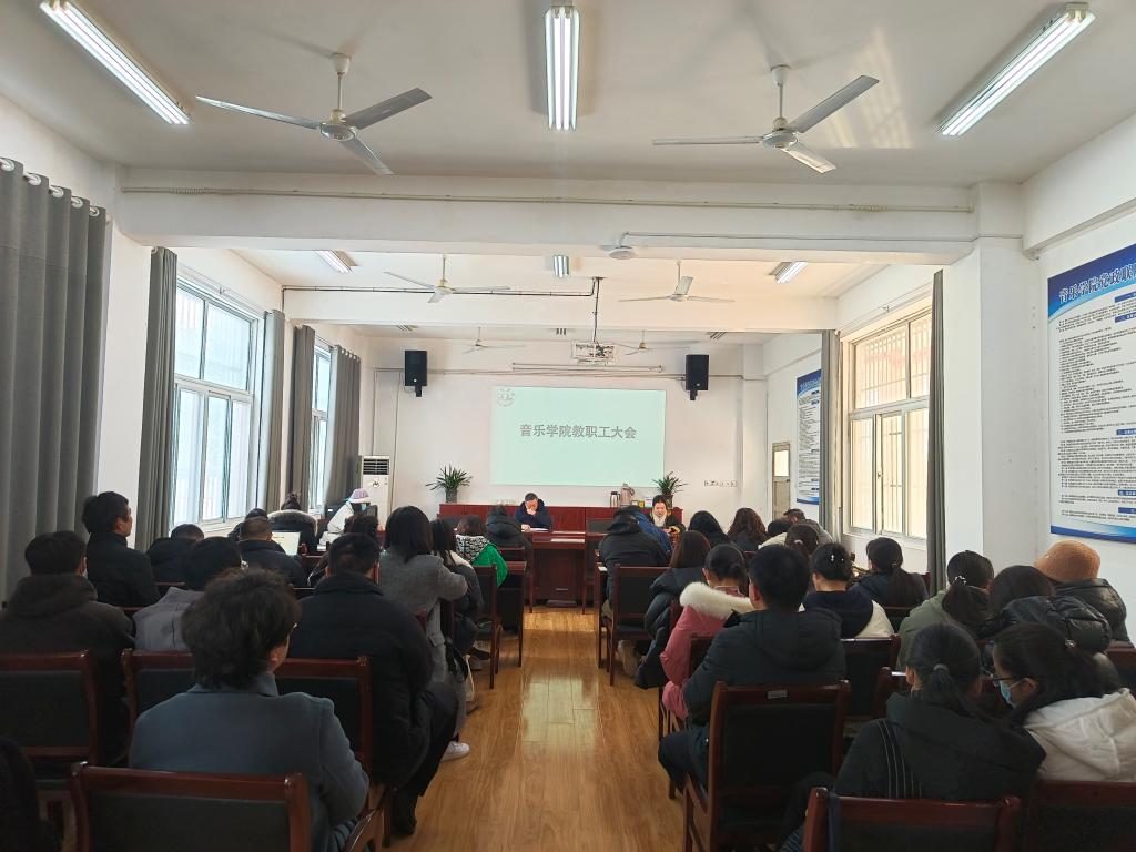 2024年2月26日,音乐学院召开新学期第一次全体教职工大会,音乐学院党委书记徐强,副院长钦媛,党委副书记、纪委书记李小娜及全体教职工参加了会议,会议由徐强主持。
