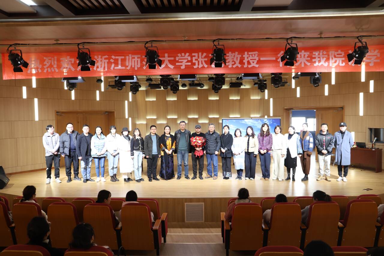 张艺教授从传统和声语言入手,详细阐述了传统和声的一般法则。再从旋律与和声、旋律与织体两个方面进行了详细讲授。最后,张艺教授以现代流行音乐包括流行歌曲、现代乐曲作为实例讲解了传统和声法则在现代流行音乐钢琴伴奏中的创新运用。讲座中,张艺教授为观众演奏了多首耳熟能详的流行音乐,现代风格的和声与炫酷的织体交相辉映,赢得了现场阵阵掌声。讲座结束后,音乐学院为张艺教授及其研究生安排了精彩的泗州戏表演,节目得到了张艺教授的高度评价。