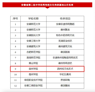宿州学院传承项目“泗州戏文化艺术”成功申报安徽省第二批中华优秀传统文化传承基地。