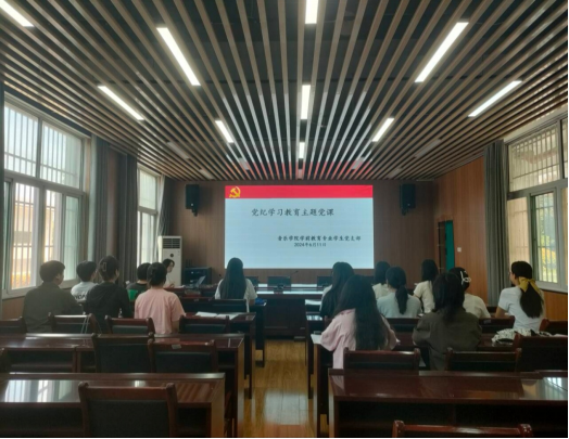6月11日,为全面深入学习党的纪律,紧扣党的政治纪律、组织纪律、廉洁纪律、群众纪律、工作纪律、生活纪律,全面贯彻落实党的二十大和历次全会精神,以习近平新时代中国特色社会主义思想为指导,音乐学院学前教育专业学生党支部开展党纪学习教育专题党课。