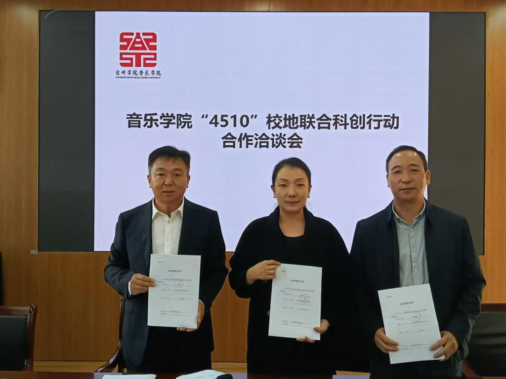 10月29日上午,宿州“4510”校地联合科创行动教授、博士县区(园区)企业行集中签约活动在我校成功举办。音乐学院以此次活动为契机,邀请了宿州特殊教育中心、奥城中心幼儿园以及其他三家优秀地方企业、教育机构来到学院,共同商讨进一步合作事宜。音乐学院党委副书记、院长钦媛,副院长陈抗及各科室负责同志参加了此次活动。