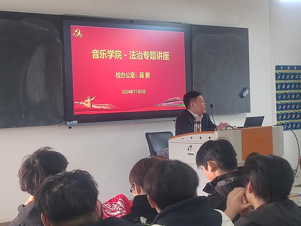 11月6日下午,音乐学院举办2024年大学生法治教育专题讲座,校办公室法治科聂鹏老师作《争做新时代尊法、学法、守法、用法的大学生》主题报告。音乐学院2024级全体新生及其他年级的法治宣传员参与本次学习。