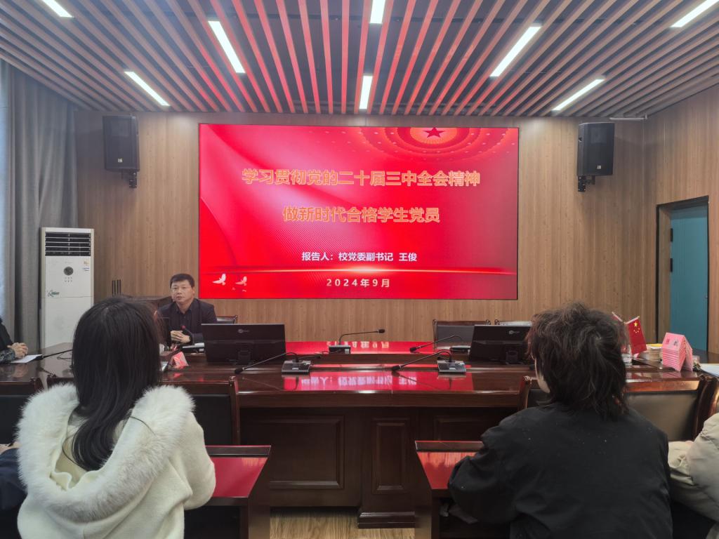 11月8日,音乐学院分党校举办第45期入党积极分子培训班开班式,校党委副书记王俊参加开班式,并作党的二十届三中全会精神宣讲。音乐学院领导班子,专职组织员,学生党支部书记以及第45期入党积极分子参加。