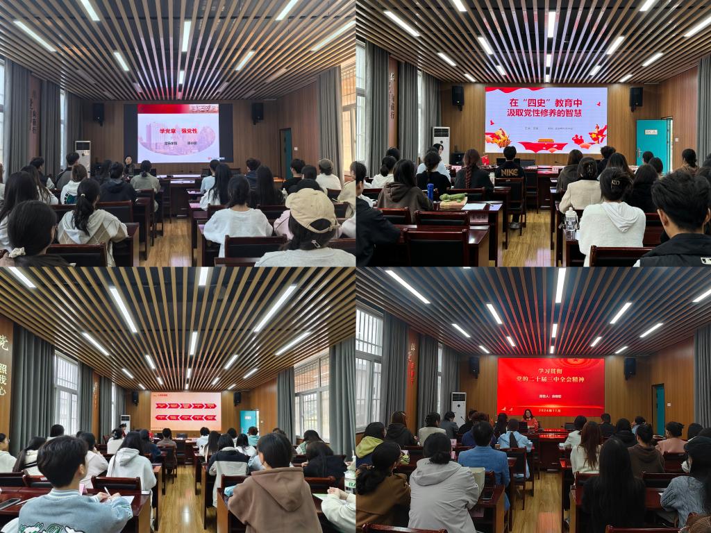 音乐学院党委书记及党支部书记分别主讲了《学党章 强党性》《在“四史”教育中汲取党性修养的智慧》《坚定理想信念 端正入党动机》,邀请理论宣讲团专家开展党的二十届三中全会精神宣讲。