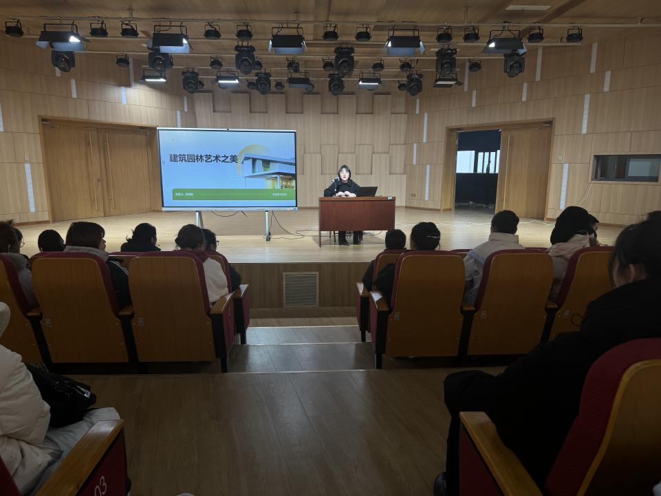为全面贯彻落实习近平总书记关于新时代中国特色社会主义文艺理论的重要论述,培养和提升大学生的文化自信、传承和弘扬中华美学精神,2024年12月27日,陈美如博士在音乐厅为音乐学院全体师生开展了关于“建筑园林艺术之美”的讲座。