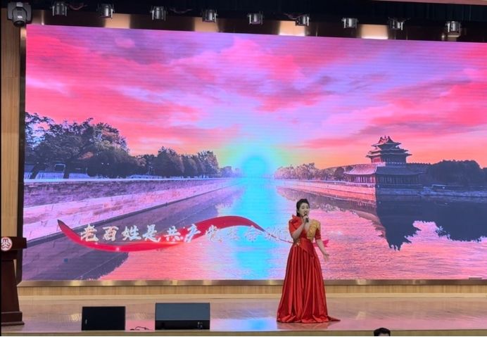 音乐学院声乐教师陈巍的开场独唱《江山》拉开了活动帷幕。她以饱满的情感、悠扬的歌声,展现出对祖国山河的热爱,大气磅礴的旋律瞬间点燃了现场气氛,赢得阵阵掌声。
