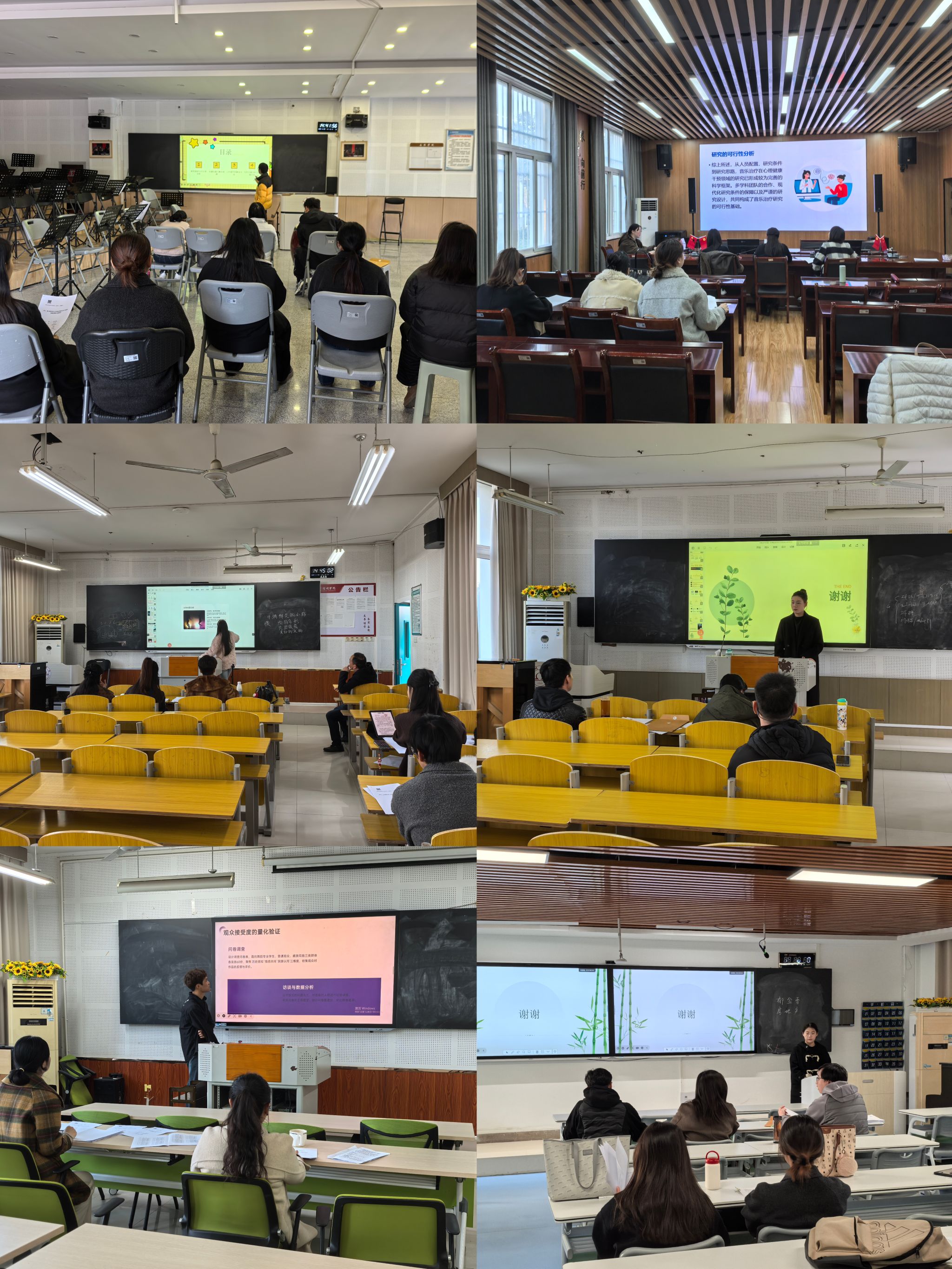 在汇报环节,同学们以PPT 演示为依托,从毕业论文(设计)的研究意义、研究现状、研究内容、研究方案及工作计划等方面进行详细梳理。评委老师们秉持严谨求实的治学态度,认真倾听每位学生的汇报,从选题可行性、研究框架合理性、专业术语规范性、创作逻辑完整性等多个维度进行精准点评。