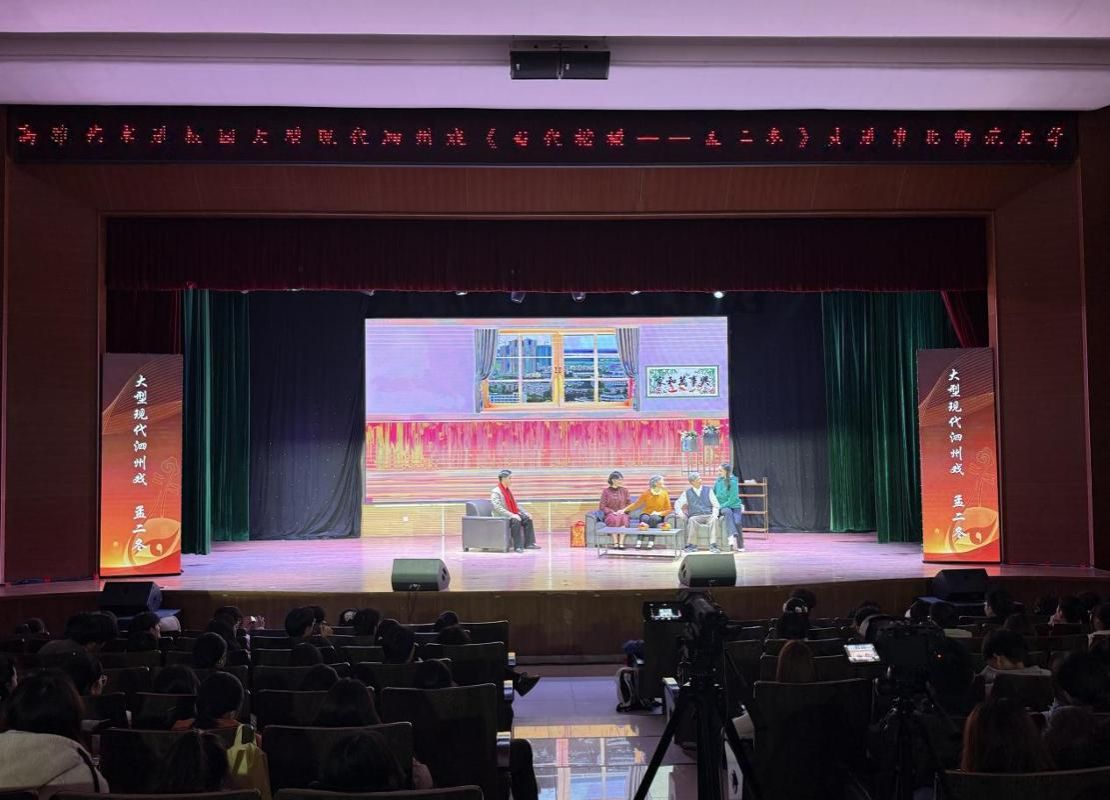 本次演出以国家级非遗泗州戏为载体,聚焦“当代楷模”孟二冬先生,用婉转唱腔再现其淡泊治学的赤诚,以舞台展现其师者大爱风范,让现场师生在感受非遗艺术魅力的同时,接受深刻的美育熏陶与精神洗礼。