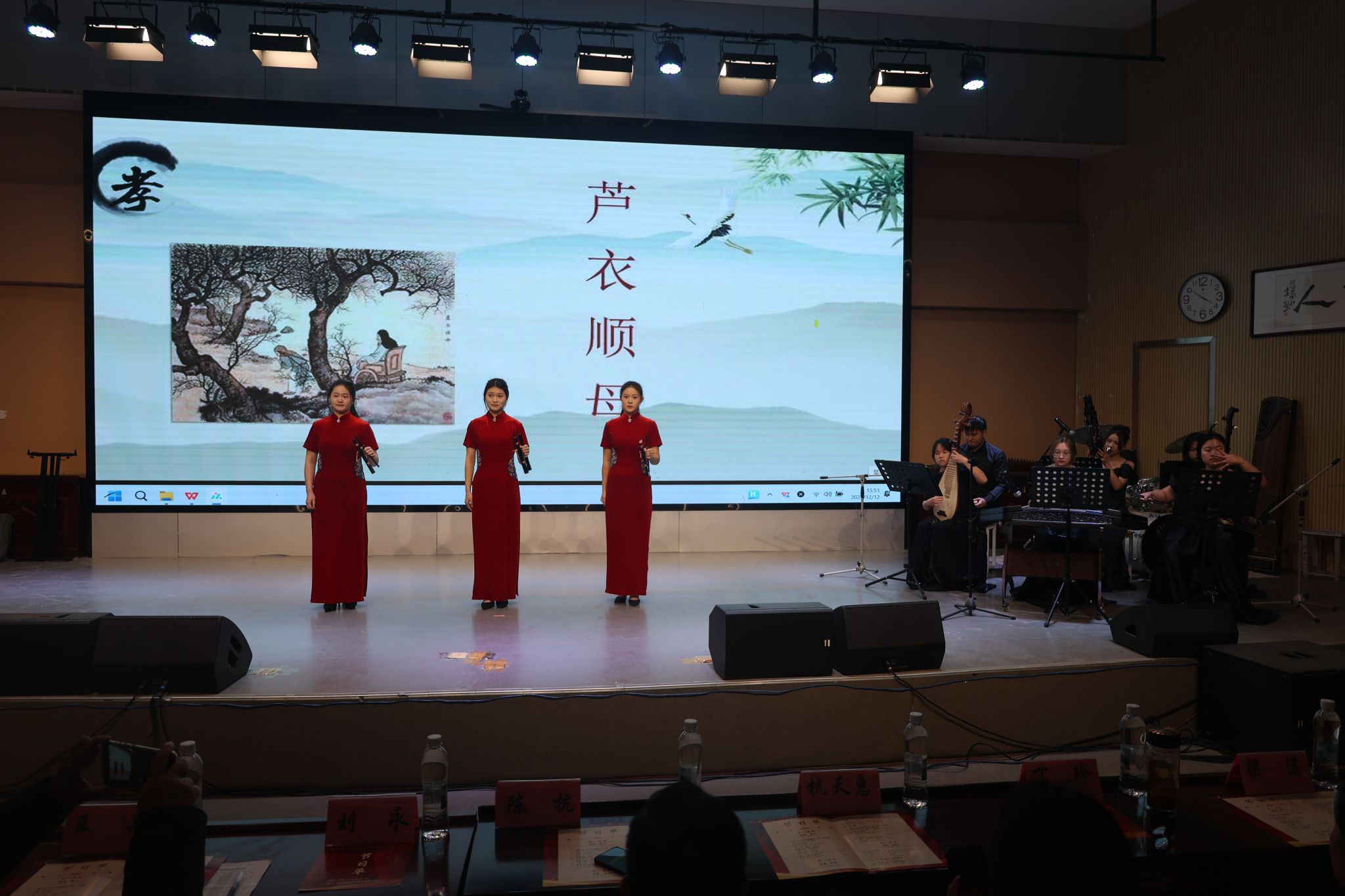九中学生展示了合唱、舞蹈、原创歌曲、器乐演奏等多种形式的精彩表演,金海校区音乐教师携手学院实习生演绎了《青玉案元夕》及《灯火里的中国》,师生同台的乐队表演更是将现场气氛推向高潮。