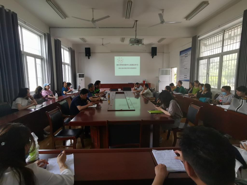 2021年6月2日,音乐学院在艺术楼一楼会议室召开音乐学院党委中心组理论学习会议,院长、党委副书记顾大海;党委副书记(临时负责)徐强;副院长陈燕秋;党委副书记、纪委书记王善虎以及全体党员参加了会议。本次会议由徐强书记主持。